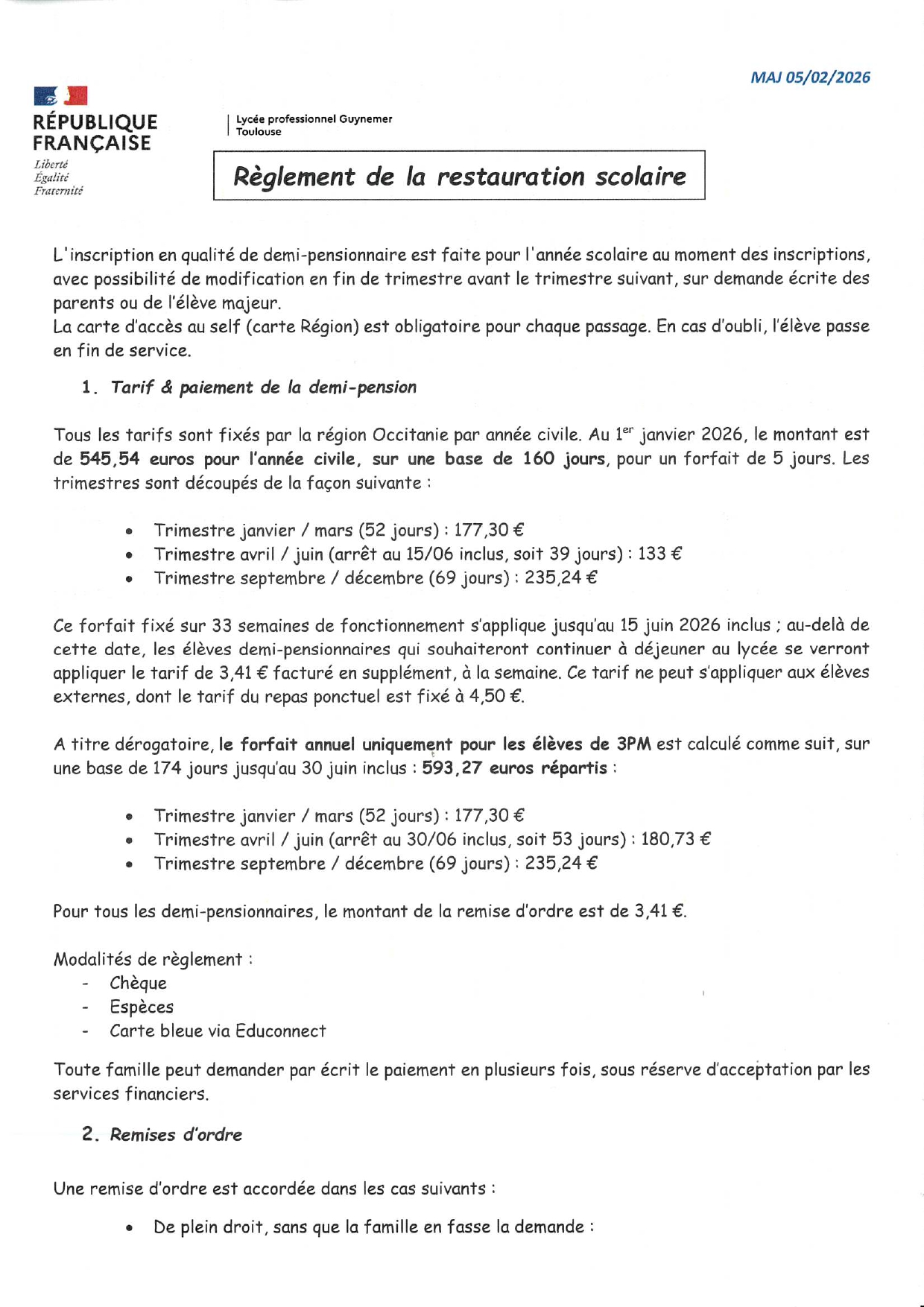 Restauration et paiement factures